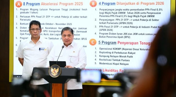 NASIONAL ~ Sebagai upaya strategis dalam menghadapi tantangan global, mendorong kualitas pertumbuhan ekonomi, serta memperluas penciptaan lapangan kerja bagi masyarakat, Pemerintah telah merumuskan Paket Ekonomi 2025 dan Penyerapan Tenaga Kerja yang terdiri dari 8 program akselerasi di 2025, 4 program yang dilanjutkan di 2026, dan 5 program andalan Pemerintah untuk penyerapan tenaga kerja.