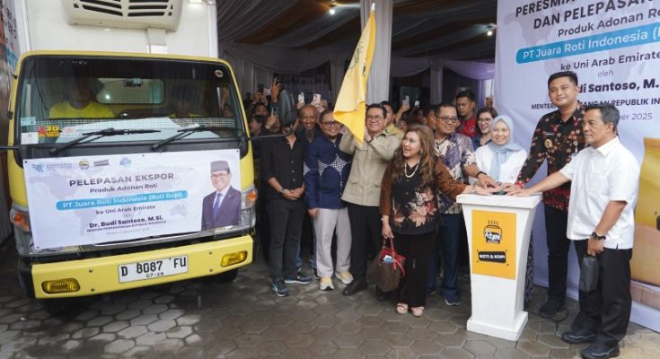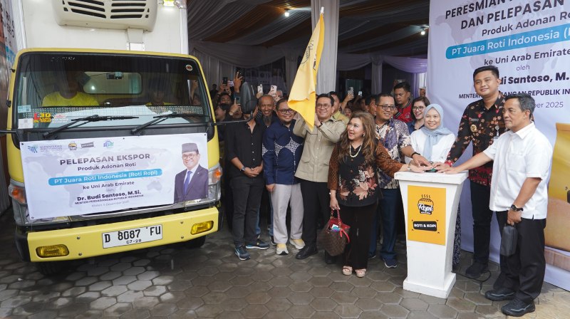 NASIONAL ~ Menteri Perdagangan Budi Santoso melepas ekspor 2 ton adonan roti beku PT Juara Roti Indonesia (Roti Ropi) ke Uni Emirat Arab (UEA) senilai Rp200 juta yang dilakukan Jumat, (05/12) di Pabrik Roti Ropi, Kabupaten Klaten, Jawa Tengah.