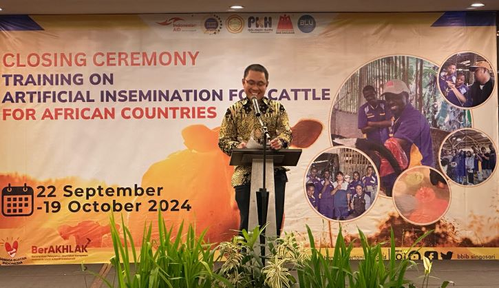 Makmun, Sekretaris Direktorat Jenderal Peternakan dan Kesehatan Hewan, yang hadir pada penutupan pelatihan, menekankan pentingnya program ini dalam kerangka Kerja Sama Selatan-Selatan. “Indonesia berkomitmen untuk meningkatkan ketahanan pangan global melalui pengembangan kapasitas SDM di bidang peternakan,” ujar Makmun.