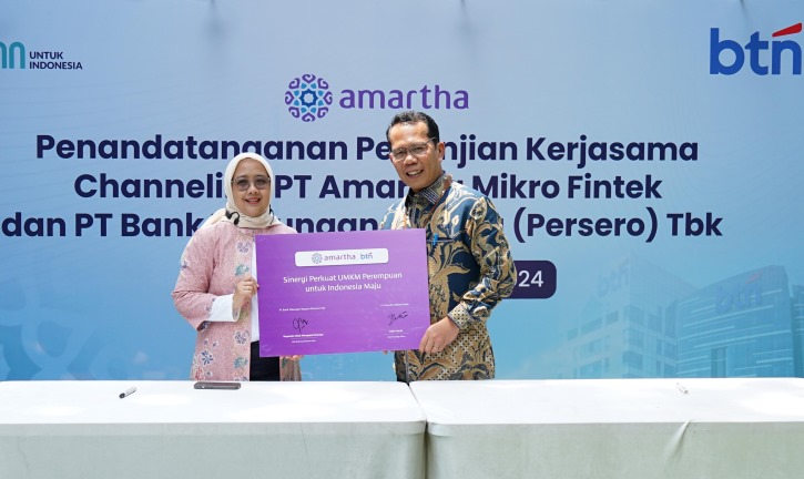 Hadir dalam penandatangan PKS Kepala Divisi SME Banking BTN, Roganda Sahat Mangapul Siahaan, Direktur serta Chief Funding Officer Amartha, Julie Fauzie.