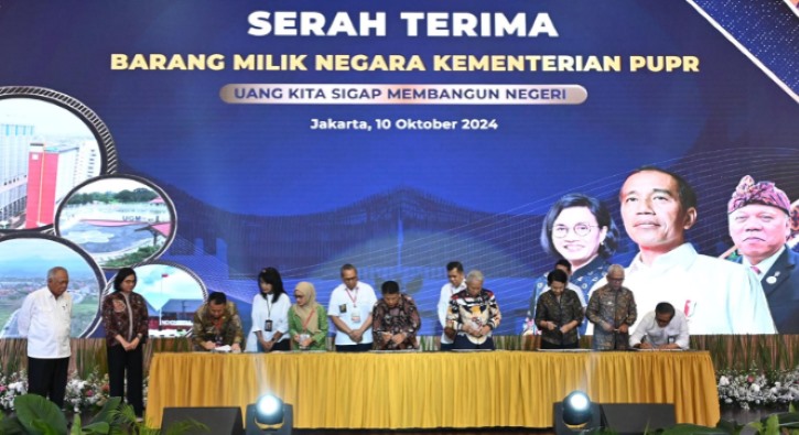 KABAR KEMENKEU – Menteri Keuangan Sri Mulyani Indrawati dan Menteri Pekerjaan Umum dan Perumahan Rakyat (PUPR) Basuki Hadimuljono pada hari ini Kamis (10/10) melakukan serah terima barang milik negara (BMN) senilai total Rp19,26 triliun. Terdiri dari BMN yang dihibahkan sebesar Rp13,36 triliun dan BMN yang dialihstatuskan penggunaannya sebesar Rp5,89 triliun.